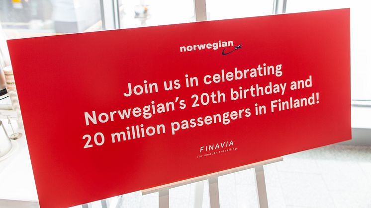 Norwegian saavutti 20 miljoonan matkustajan merkkipaalun Suomessa